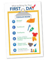 Download our checklist for a list of everything you need on your child's first day in the toddler classroom!
