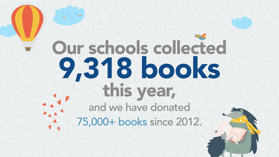 New Horizon Academy schools collected 9,318 books this year, and we have donated over 75,000 books since 2012.